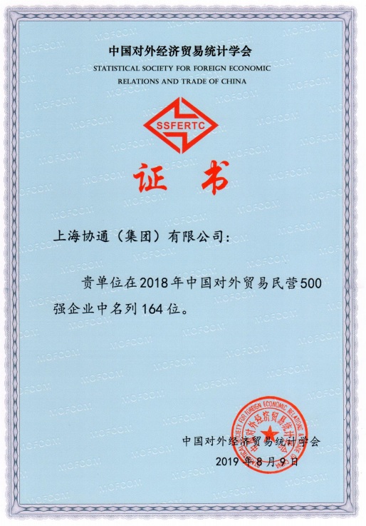中國對外經濟貿易統計學會于2019年8月9日在海南舉辦中國對外貿易500強企業排名發布暨海南投資環境介紹會。協通集團在本次發布會中名列民營進出口500強企業第164位,同比去年的第178位,上升了14位。相信協通集團外貿產業將一如既往砥礪前行,蒸蒸日上,百尺竿頭,更進一步。